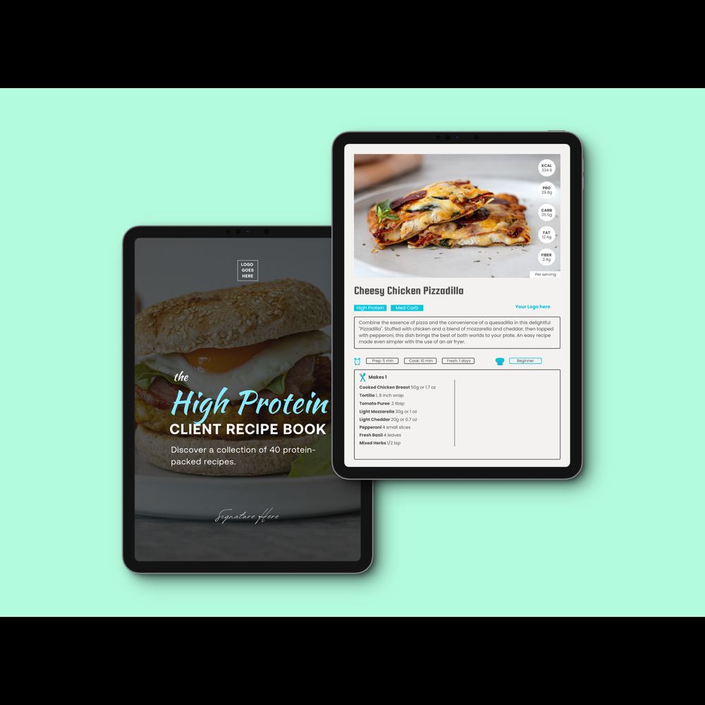 Elevate your nutrition coaching services with 40 brand-as-your-own high-protein recipes. Instantly boost your client adherence rates while simultaneously improving your brand.